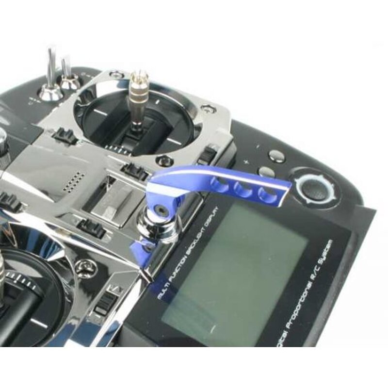 Questo accessorio è utile per spostare in basso il punto d’attacco delle cinghie nei trasmettitori Futaba, JR, Hitec, etc. Si evita così che il radiocomando cada indietro quando si usano i moduli 2.4 Ghz. Per trasmettitori con occhiello verticale